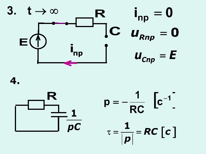 Расчет переходных процессов первого порядка классическим методом 1. Задать направления токов 2. Определить начальные условия а) ННУ при б) ЗНУ при 3. Определить принужденную составляющую