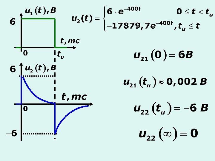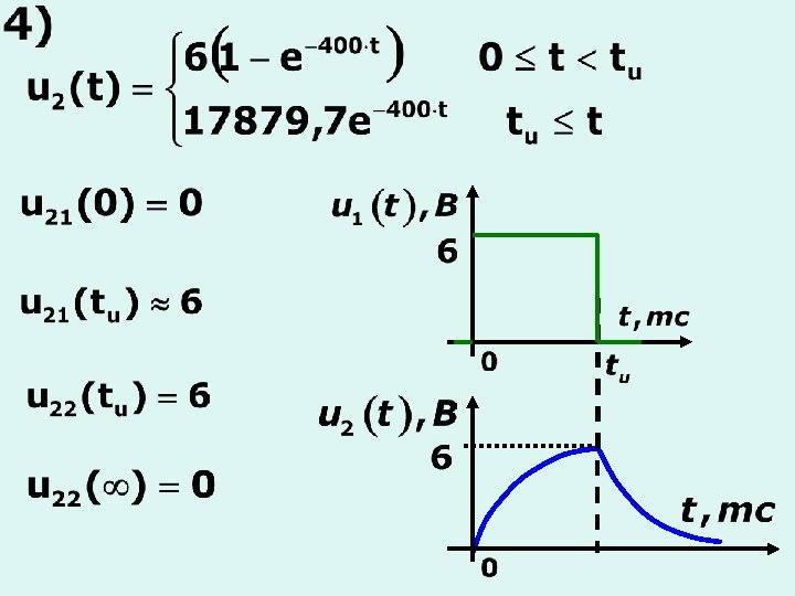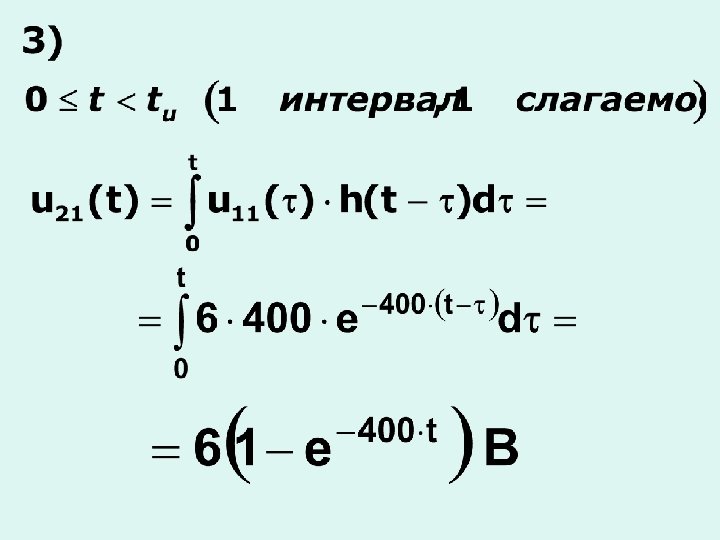 Порядок расчета интегралом Дюамеля (свертки) 1. Аналитически описать входной сигнал 2. Рассчитать переходную (импульсную) характеристику цепи 3. Записать интеграл Дюамеля (свертки) 4. Построить график