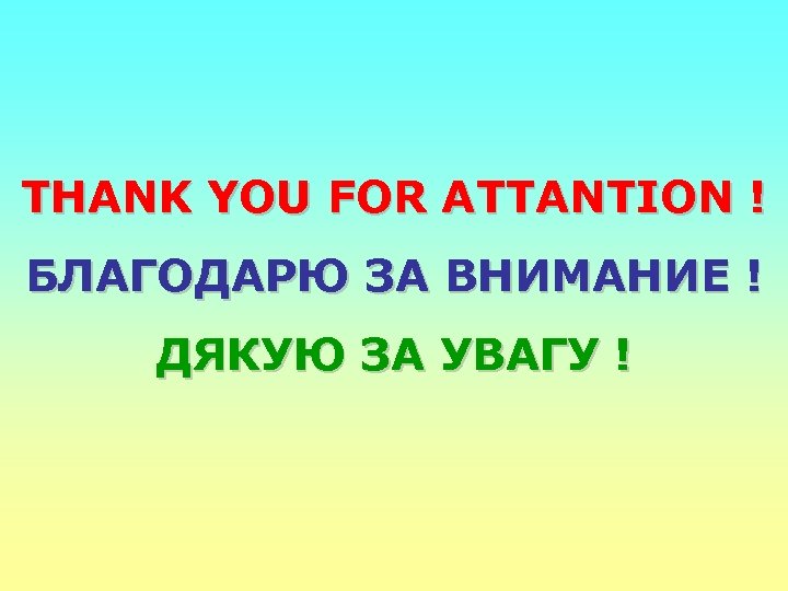 THANK YOU FOR ATTANTION ! БЛАГОДАРЮ ЗА ВНИМАНИЕ ! ДЯКУЮ ЗА УВАГУ !