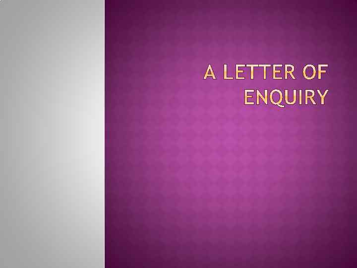 Должно сообщать читающему о том, что это запрос или просьба Enquiry about Textbooks Request for Brochure Query about Website Question regarding Product Components