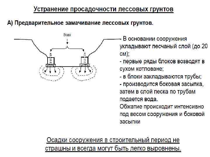 56. СТРОИТЕЛЬНЫЕ МЕРОПРИЯТИЯ ПРИ УСТРОЙСТВЕ ФУНДАМЕНТОВ НА ЛЕССОВЫХ И СЛАБЫХ СИЛЬНОСЖИМАЕМЫХ ГРУНТАХ