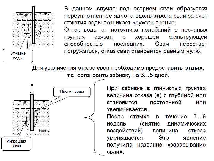 43. ЯВЛЕНИЯ, ПРОИСХОДЯЩИЕ В ГРУНТЕ ПРИ ПОГРУЖЕНИИ СВАЙ, ПОНЯТИЕ ОБ ОТДЫХЕ, ОТКАЗЕ И ЛОЖНОМ ОТКАЗЕ СВАЙ. РАБОТА ОДИНОЧНЫХ СВАЙ И СВАЙ В КУСТЕ
