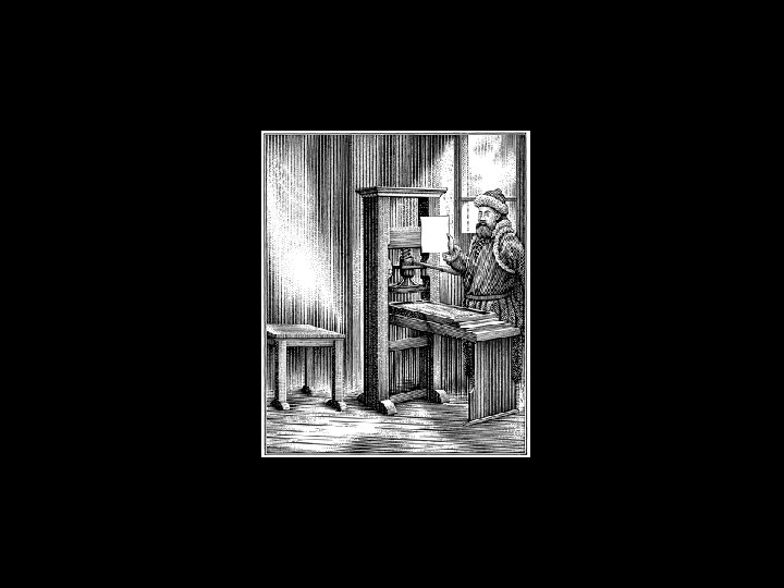 • The steam-powered rotary press, invented in 1814, could print as many as 16, 000 sections per day. • In 1885, the Mergenthaler Linotypesetting machine was introduced: § Allowed a compositor to type at a keyboard rather than pick each letter out by hand, thus further speeding up the printing process.