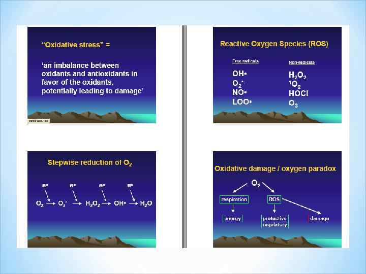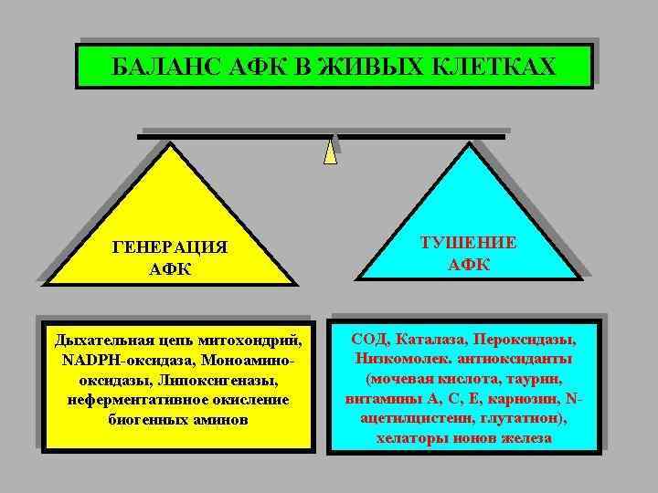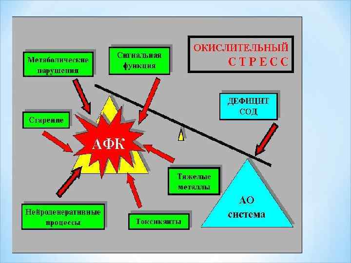 * Избыток антиоксидантов вызывает прооксидантный эффект GS-SG АО е * АФК АО* NAD Glu. S NADH 2 H -Tocoferyl* -Tocoferol Ascorbat Asc*