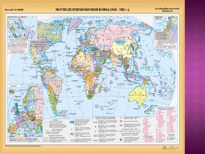 Итоги и последствия ВМВ Сверхдержавы: СССР и США; Великобритания – под влияние США Сформированы сферы влияния СССР (социалистический лагерь страны В. Европы) и США (капиталистический) Биполярная международная система «Холодная война» (1946 – 1991) – глобальное геополитическое, военно-экономическое, идеологическое противостояние США и СССР
