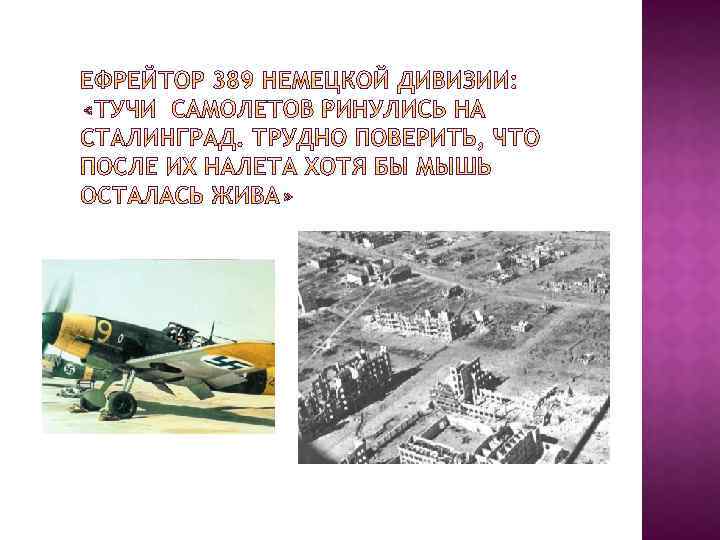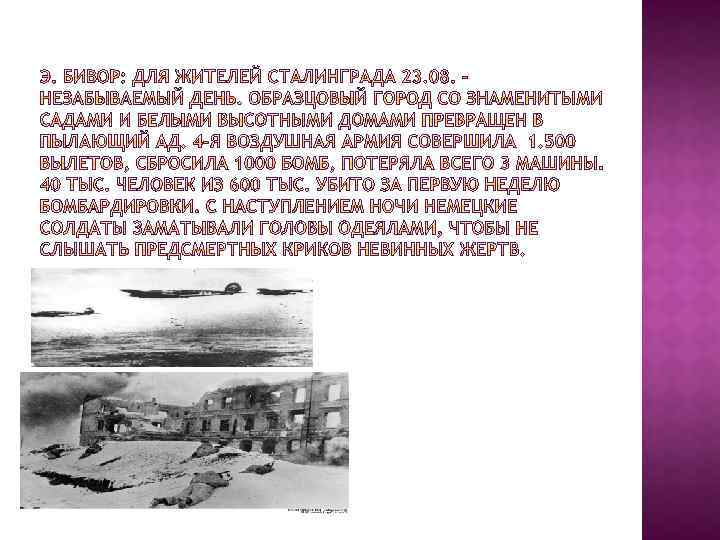 « От города остались груды щебня и огромное количество воронок от авиабомб и снарядов. Некоторые ямы так глубоки, что лучи низкого зимнего солнца не достигали дна»