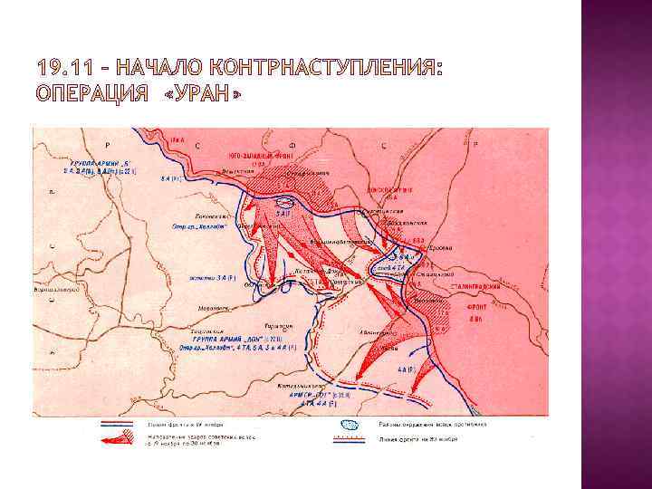 Географический, климатический фактор: жара, холод, открытая местность, степной климат, сердечнососудистые, желудочнокишечные заболевания Слабость союзников: румынская танковая дивизия – только легкими чехословацкими и французскими танками. Боевая мощь союзников по сравнению с немецкой армией – 50 -60%; слабый моральный дух Просчеты Гитлера и прусский характер Паулюса – соблюдение принципа единоначалия, подавление инициативы