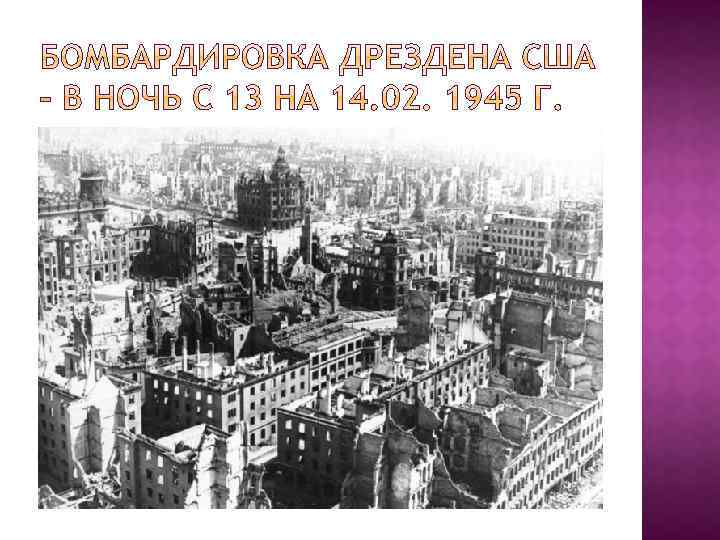 «Дрезден с его неповторимыми памятниками архитектуры обращен в пепел и руины. Печальная слава варварского уничтожения – жертвами американских и английских бомбардировщиков - десятки тысяч людей. Ни один советский самолет не сбросил ни одной бомбы»
