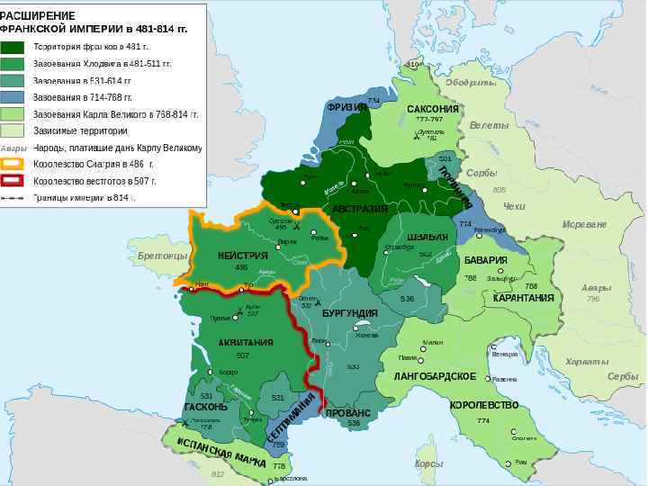ФРАНКСКАЯ МОНАРХИЯ КАРОЛИНГОВ ((687 г. ) 751 – 843 гг. ) Основатель: (ПИПИН ГЕРИСТАЛЬСКИЙ) Уровень (688 – 689 гг. ) управления ПИПИН КОРОТКИЙ (751 – 768 гг. ) Способ комплектования войска: Центральный ДРУЖИНА + РЫЦАРСКОЕ ВОЙСКО; Тип общественных отношений: ФЕОДАЛЬНЫЙ Местный Отношения с церковью: ВЛИЯНИЕ НА ОТНОШЕНИЕ Общинный К РАБАМ; РАЗДАЧА ЗЕМЛИ; ЦЕРКОВНАЯ ДЕСЯТИНА. 745 г. ЦЕРКОВНЫЙ СОБОР; Система управления Территория Органы управления Король Государство Совет Собрание магнатов «Майские поля» Графство Граф «Сотня» Центенарии (викари) Марка Сельские сходки