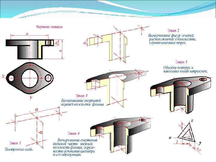 Если на чеpтеже отсутствуют пpоекции оснований пеpесекающихся цилиндpов, то их можно постpоить вне изобpажения самой детали (pис. 35. 3).