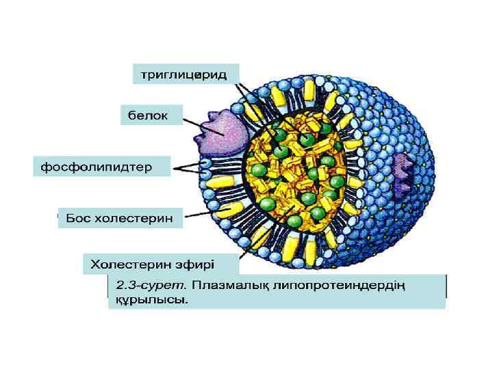 5. БМҚ синтезі. 6. Апобелоктар мен липопротеиндер (ЛП) түзіледі. ТӨТЛП ТЖЛП пре-β-ЛП α-ЛП 55%ТАГ 50% ХС 50%белок ТАГ-ты ХС-ді басқа ХС-ді тіндерден май тініне тіндерге бауырға Т А С Ы М А Л Д А У