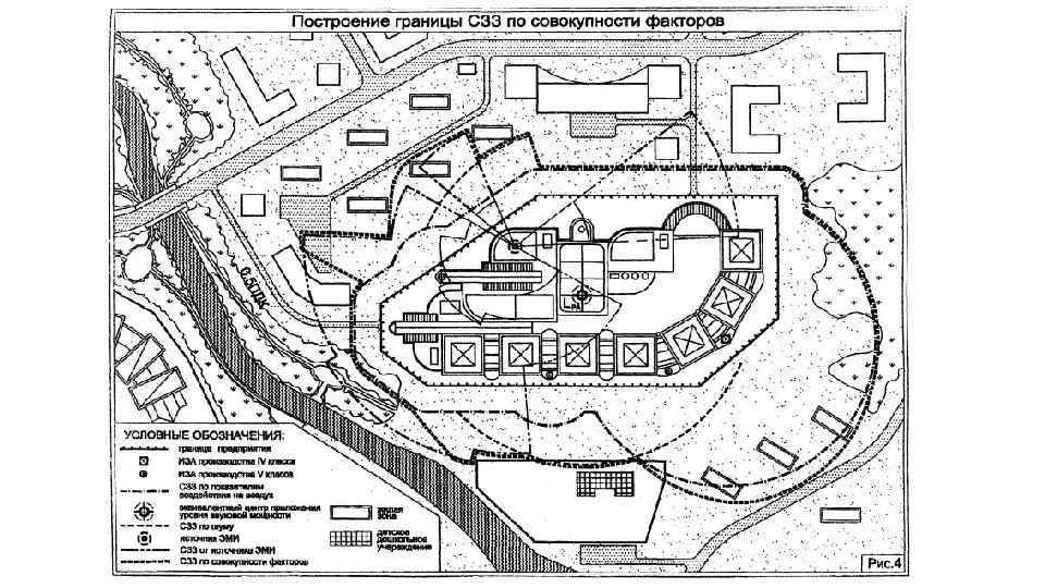 Санітарно-захисна зона — територія навколо потенційно небезпечного підприємства, в межах якої заборонено проживання населення та ведення господарської діяльності, розміри якої встановлюються проектною документацією відповідно до державних нормативних документів. Санітарно-захисні зони - припускають розміщення на їхній території підприємств із виробництвом нижчого класу шкідливості, ніж виробництво, для якого встановлена зона, але за умови аналогічного характеру шкідливості. Санітарно-захисні зони створюються навколо об'єктів, які є джерелами виділення Допускають також на території санітарнозахисної зони розміщувати • • • шкідливих речовин, запахів, підвищених рівнів шуму, вібрації, ультразвукових і електромагнітних хвиль, електронних полів, іонізуючих випромінювань тощо, з метою відокремлення таких об'єктів від територій житлової забудови. У межах санітарно-захисних зон забороняється будівництво житлових об'єктів, об'єктів соціальної інфраструктури та інших об'єктів, пов'язаних з постійним перебуванням людей. • • пожежні депо, пральні, гаражі, склади (крім продовольчих, загальнотоварних і спеціалізованих), конструкторські бюро, лабораторії, що пов’язані з підприємствами, магазини, поліклініки, що обслуговують виробництво, стоянки пасажирського й індивідуального транспорту, інженерні мережі та споруди.