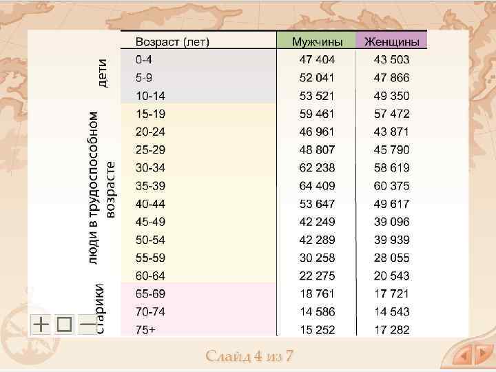VI. Специальные возрастные коэффициенты Оценивают степень, в которой население обеспечивает восстановление своей численности. Если коэффициент меньше 1, то численность новых поколений будет меньше предшествующих, если больше 1 - то больше предшествующих: общий коэффициент фертильности (от лат. fertile — плодовитость) среднее количество детей, рожденных одной женщиной; нетто коэффициент воспроизводства населения - число девочек от одной матери, доживающих до среднего возраста матери; брутто коэффициент воспроизводства населения - отношение числа девочек к числу женщин в репродуктивном возрасте (от 15 до 45 лет).