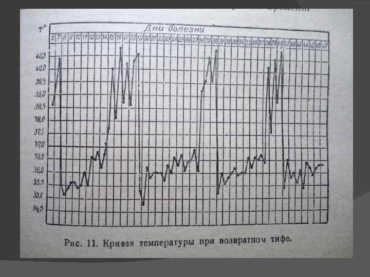 Патогенез и течение болезни. Размножение боррелий в эндотелии и клетках РЭС => приступ лихорадки, разрушение боррелий => размножение нового Ag варианта боррелий => новый приступ лихорадки. Инкубация 5 -15 дней (~7). Приступы лихорадки: первый длится 4 -6 дней, следующие – по 1 -3 дня; паузы по 6 -9 дней. Озноб => жар => профузный пот, коллапс. Без лечения: 2 -5 приступов. Летальность 30 %, на фоне антибиотиков < 1%.