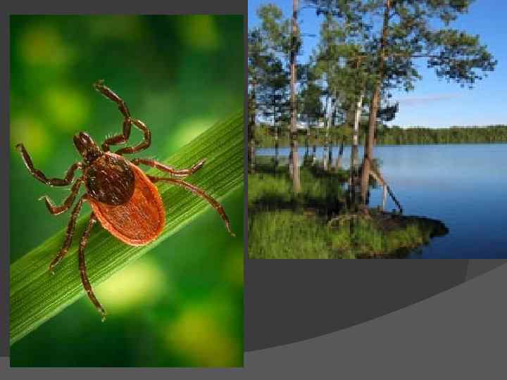 Болезнь Лайма (1975) Иксодовые клещи: твердые (дорсальный щиток) Леса умеренного климата Ждут на траве, листьях (~50 см над землей) Метаморфоз 3 -5 лет => Borrelia burgdorfery (10 Ag вариантов) До 60 % клещей могут быть инфицированы; + иксодовые клещи передают риккетсий и более 70 арбовирусов => микст-инфекции.