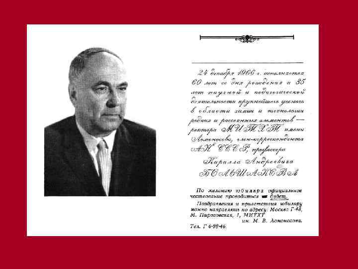 Ректор МИТХТ им. М. В. Ломоносова проф. , д. х. н. , член-корр. АН СССР, n. Кирилл Андреевич Большаков, nлауреат Государственных премий СССР