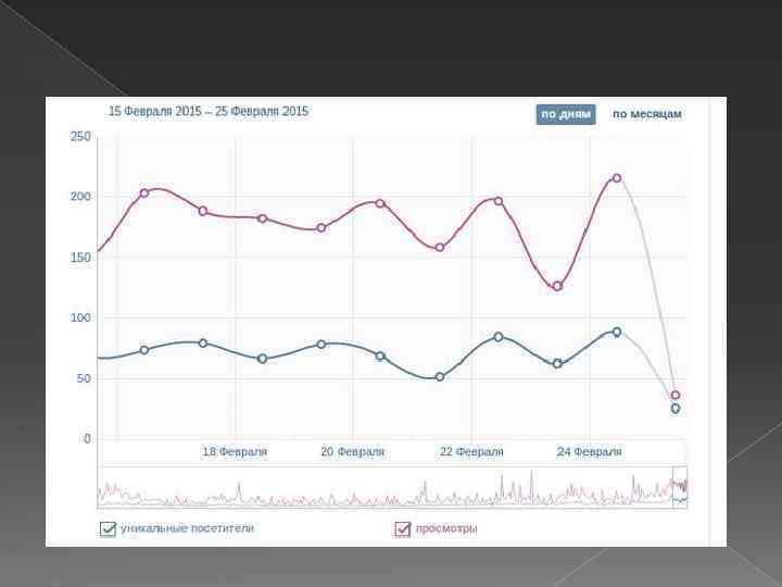 15. Анализируйте статистические данные В разделе «Статистика страницы» администратору паблика доступны вкладки «Посещаемость» , «Охват» и «Активность» . На вкладке «Посещаемость» уделяйте внимание данным о просмотрах и уникальных посетителях.