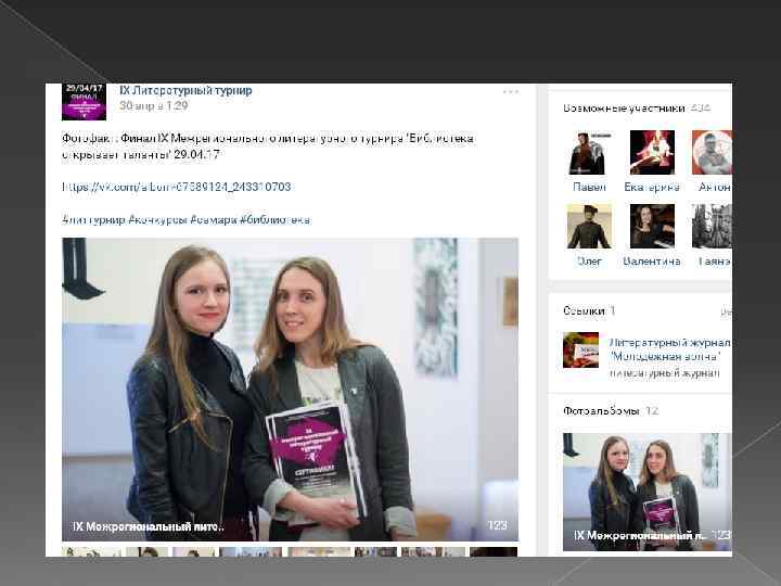 26. Публикуйте фото подписчиков фотографии победителей конкурса или самых активных участников библиотечных мероприятий. Естественно, фотографии можно публиковать с согласия и по желанию пользователей.