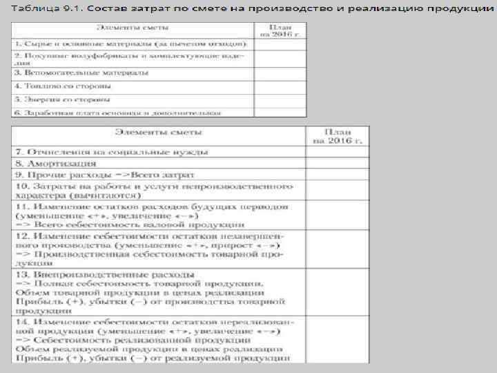 Смета затрат на производство и реализацию продукции • составляется с целью определения общей суммы затрат предприятия (по экономическим элементам) и взаимной увязки этого раздела с другими разделами бизнес плана предприятия.