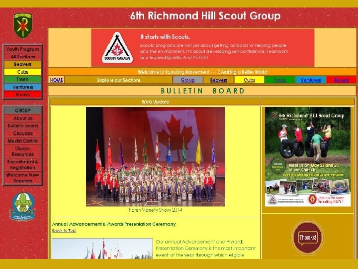 Thanks Button Show appreciation to the Scouters Link: http: //www. 6 thrichmondhillscoutgroup. or g/index 2. html Scouters will receive certificates and awards from Scouts Canada