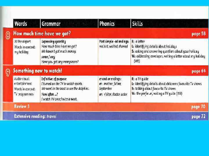 Уровни 5 -6 • 12 юнитов (тематических глав) • 8 страниц на 1 юнит • Постоянное закрепление материала + увеличенное количество заданий на слова и грамматику • Навыки использования словаря – dictionary skills • 1 стр на повторения на каждый юнит в Class Work and Work book