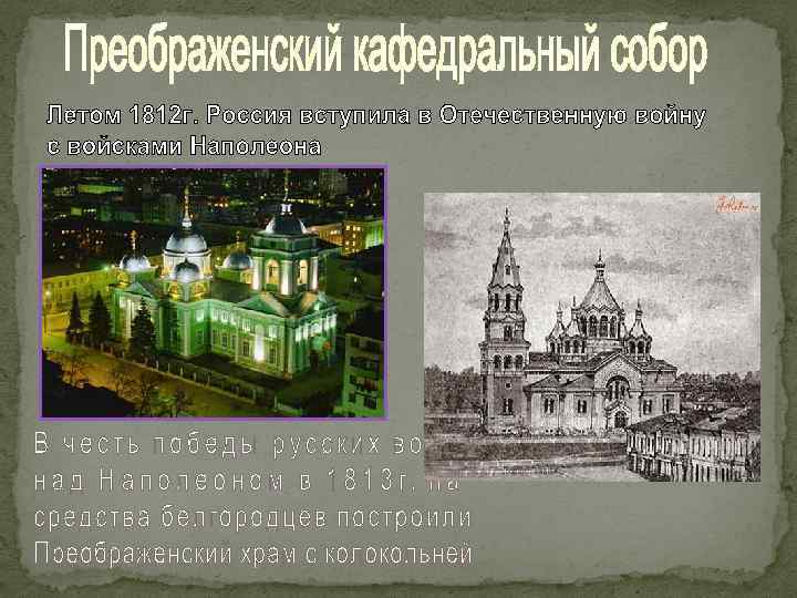 Во время правления Петра I Белгородская крепость принимала участия в строительстве судов. С Белгородчины туда направлялся строительный лес, а также тысячи мастеров Своеобразным памятником пребывания Петра I в Белгороде является Успенско -Николаевский собор. Это самый старый каменный храм в Белгороде
