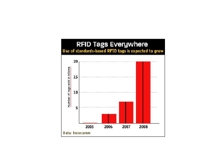 What about the cost? • Readers cost US$1000 or more • Tags cost US$0. 20 or more – If an item costs US$2. 00, a US$0. 20 tag is 10% of the cost Flash: Buy 1, 000 tags and Alien Technology will sell them for less than $0. 20 each See: http: //www. alientechnology. com/products/rfid-tags/