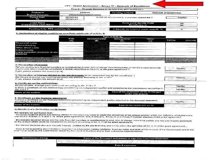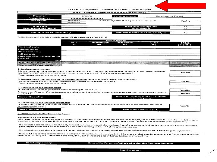 Audito sertifikatas Certificate on the financial statements n Ypatingas atvejis projektams, kurių trukmė 2 metai ar mažiau: Periodas Tinkamos išlaidos EK dotacija @50% Sukaupta suma, kuriai dar nepateiktas sertifikatas Sertifikatas būtinas 1(12 mėn. ) € 800, 000 € 450, 000 € 400, 000 NE 2 (galutinis) € 410, 000 € 205, 000 € 605, 000 TAIP Sertifikatas turi patvirtinti visas tinkamas projekto išlaidas (1 210 000 EUR). • Pateikiamas tik vienas sertifikatas. • (1)