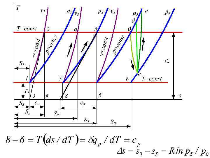 6. Определяется изменение удельной энтальпии в процессе по формуле, справедливой для всех процессов идеального газа: Рассматриваемые процессы или для постоянной теплоемкости: считаются обратимыми. 7. Определяется изменение удельной энтропии идеального газа по формулам: