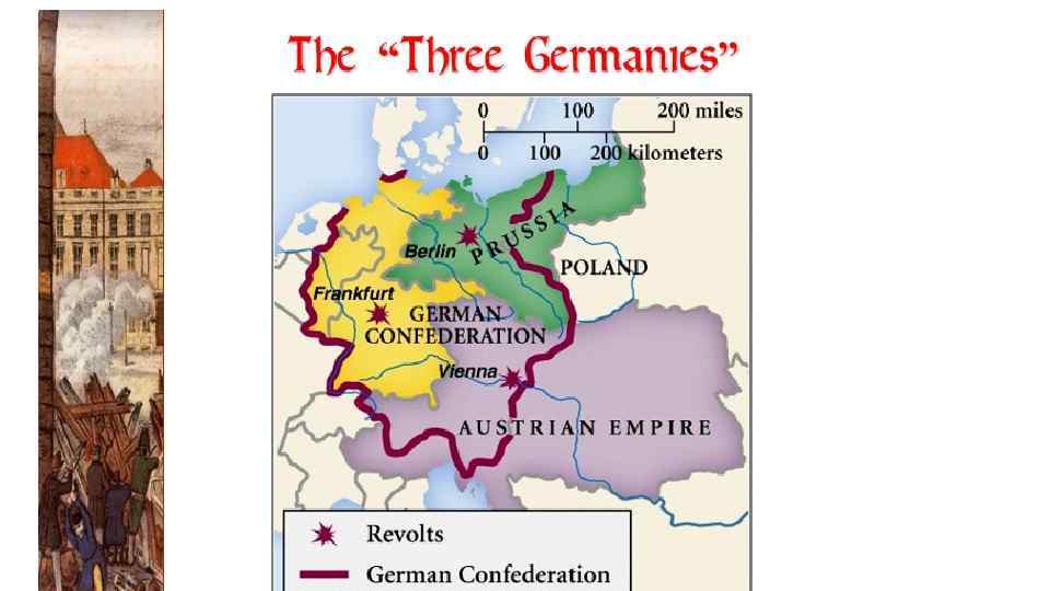 Территория бунтов, восстаний Бунты и центры революционных действий Границы Германской конфедерации