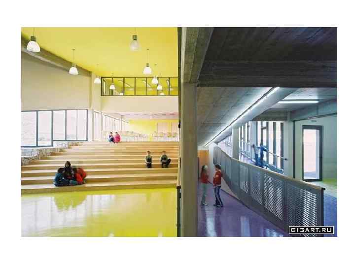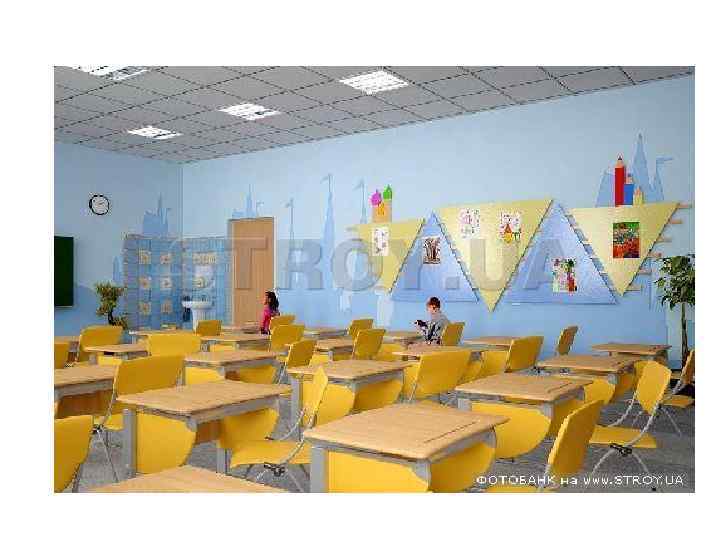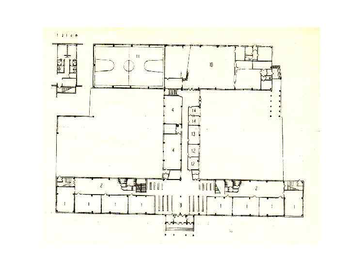 8. Общеобразовательные школы. Типы школ. Основные группы помещений. Типы классов. Создание эмоционально-образной атмосферы школьных зданий. • • Радиус обслуживания для общеобразовательных школ обычного типа принимается равным 500 м. Состав помещений школьных зданий 1. Учебные помещения 1 - 4 классы 5 - 9 классные помещения и лаборатории 10 -11 учебные кабинеты и лаборатории 2. Помещения для трудового обучения • 3. Спортивные помещения • 4. Помещения культурно-массового назначения • 5. Столовая • 6. Административно-хозяйственные помещения • •