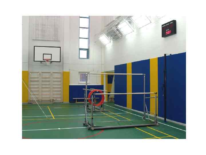 Спортивный блок • Спортивный зал следует размещать на 1 этаже в пристройке. • Площади спортивных залов приняты 9 х18 м. , 12 х 24 м. , 18 х30 м. при высоте не менее 6 метров. • Размер актового зала определяются числом посадочных мест из расчёта 0, 65 кв. м. на одно место и 60% от общего количества обучающихся. • Кабинет врача должен быть длиной не менее 7 м (для определения остроты слуха и зрения обучающихся) и площадью не менее 14 кв. м.