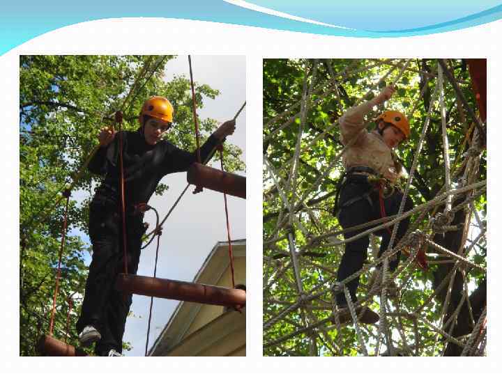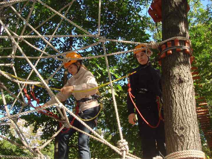 Для тех, кто только начинает знакомиться с данным видом активного отдыха, в верёвочном городке предлагают сначала пройти "нижнюю" трассу, расположенную на уровне 1, 5 метров над землёй. Несмотря на небольшую высоту, прохождение осуществляется в страховочном снаряжении.