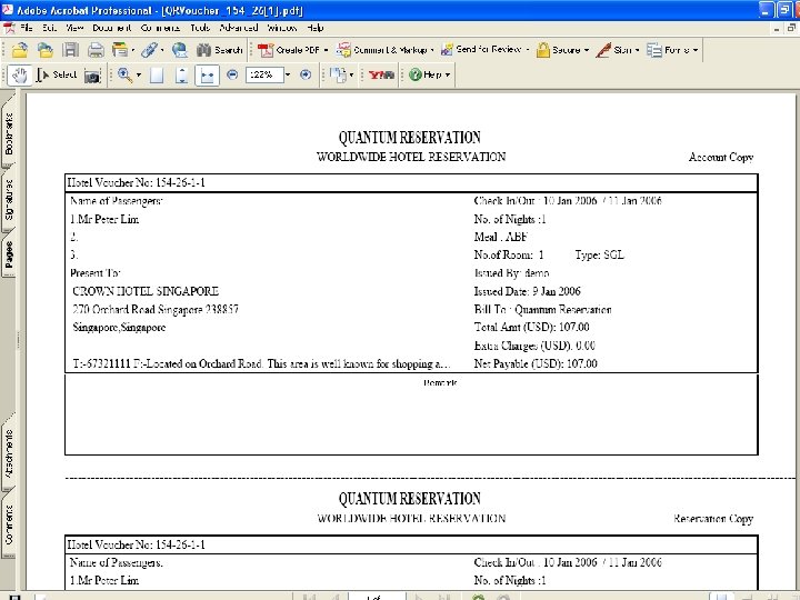 Thank you for viewing this presentation Do contact us if you require more information at: Quantum Reservation 89 Club Street, Singapore 069457 Telephone : +65 6220 5005 Fax : +65 6220 5115 Email: booking@quantumreservation. com