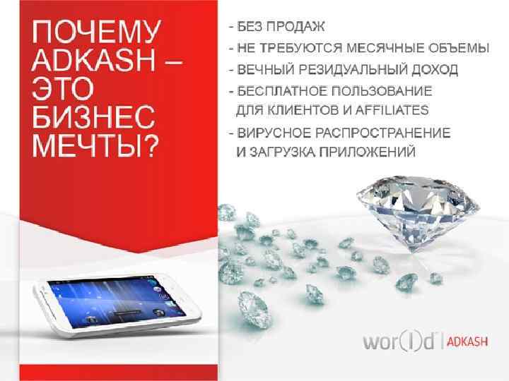 ADKASH • Сколько у вас контактов есть в вашем телефоне? • Порекомендуйте программу своим друзьям и предложите им сделать тоже самое. Поколение 1 2 3 4 5 6 7 Пользователи 3 9 27 81 243 729 2187 3279 пользователя в вашей сети х $ 0, 20 = 655. 8 $ в неделю