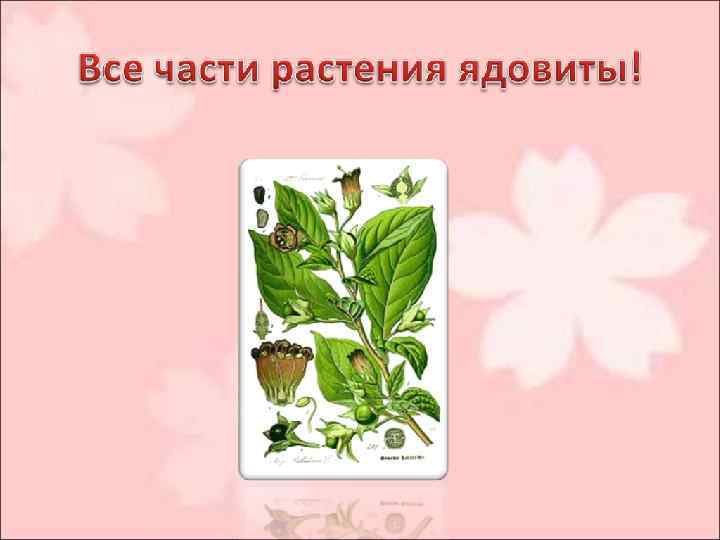 • В семенах также содержится горький гликозид, смолы, жирные масла. Именно семена, приятные на вкус и напоминающие семена мака, чаще всего вызывают отравления. • Первые признаками отравления является расширение зрачков, головокружение, покраснение лица, чрезмерное возбуждение, сопровождающееся бредом и галлюцинациями.