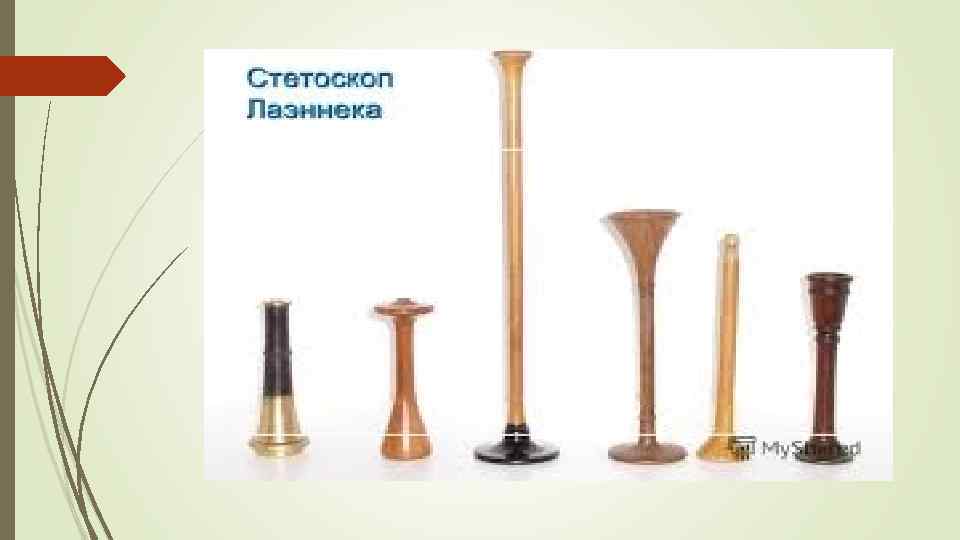 Теобальд Чартран картинасы Ғасырдың келесі жылдары мен қазіргі уақытқа дейін Рене Лаэннек зерттген аускультативті көріністерге тек плевра үйкелісінің шуы және ылғалды сырылдардың қатаң мен ұяң болып бөлінуі ғана қосылды. Ал аускультативті феномендердің клинико-анатомиялық түсіндірілуі қазіргі кезге дейін өз маңыздылығын жоғалтпады. Стетоскоптар Ең бірінші стетоскоптарды Лаэннек тығыз қағаздан жасады. Кейн оптималды акустикалық әсерлерді іздеп, ағаштың әр түрінен жасай бастады. Лаэннек ұсынған алғашқы қондырғының сыртқы түрі де өзгеше болды. Тыңдау құралы – қуысы бар цилиндр тәрізді түтік кейін жетілдіріліп, қазіргі стетоскоптардың пішініне келді. Элисонның дифференциалды стетоскопы – қолайсыз құрал Алғашқы фонендоскоп (1894) Стетоскоптан айырмашылығы – мембранасы бар. Мембрана жұмыс бетін жауып дыбыс берілуін жақсартады.