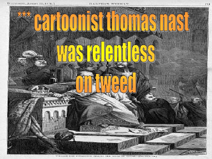 William Tweed (1823 -1878), AKA Boss Tweed, ruled Tammany Hall, Democratic political machine in NY City.