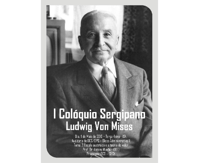 Carreira • Estudos na Universidade de Viena • 1906 Doutorado • 1913 -1934 leciona na Universidade de Viena e trabalha como conselheiro econômico na Câmera Austríaca de Indústria e Comércio • 1934 -1940 professor no Institut de Hautes Études Internationales em Genebra • 1940 publicação de «Nationalökonomie » (http: //mises. org/Books/nationaloekonomie. p df)