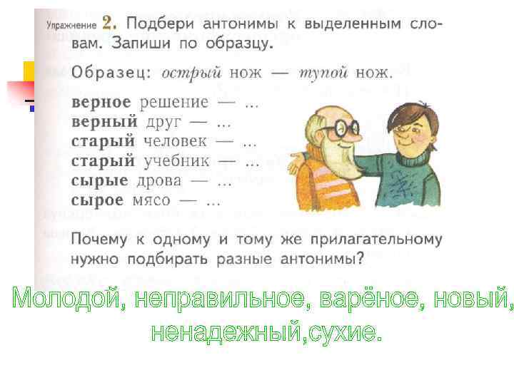 А теперь попытайтесь закончить рассказ Долго я был плохим учеником. Тетради были у меня грязные, писал я небрежно. Грустно я плелся домой после уроков. Мама всегда огорчалась, когда видела мой дневник. Надоело мне все это. Что я хуже других? Стал внимательным, старательным. И вот я уже считаюсь… n Выделенные слова замените антонимами.