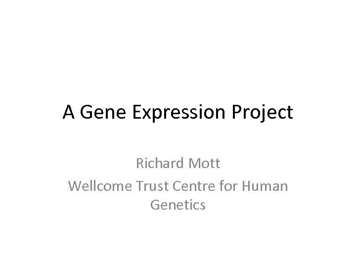 A Gene Expression Project Richard Mott Wellcome Trust Centre for Human Genetics