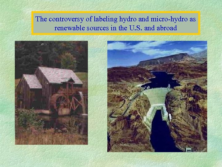 The controversy of labeling hydro and micro-hydro as renewable sources in the U. S. and abroad
