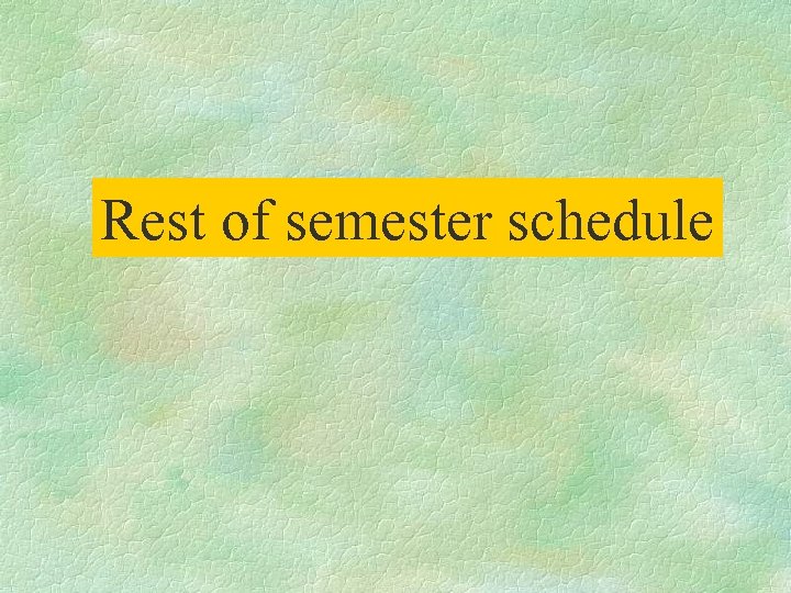 Rest of semester schedule