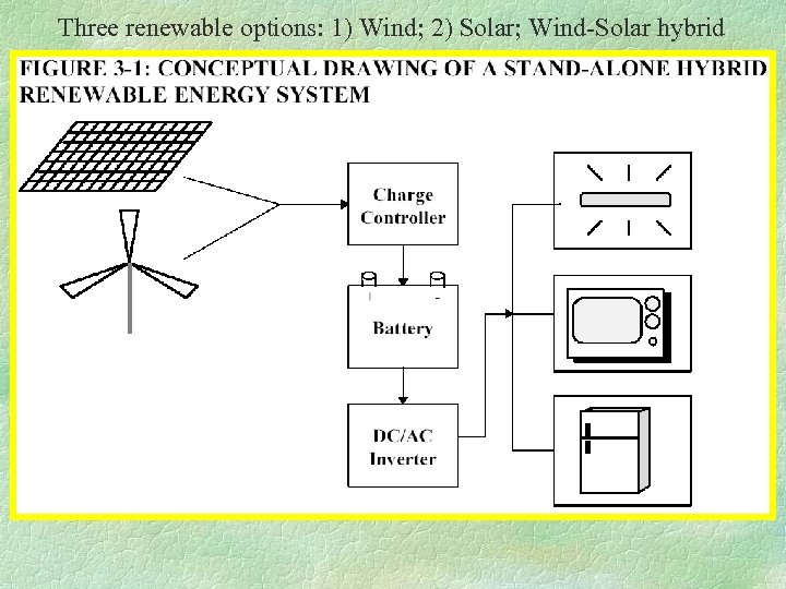 Three renewable options: 1) Wind; 2) Solar; Wind-Solar hybrid