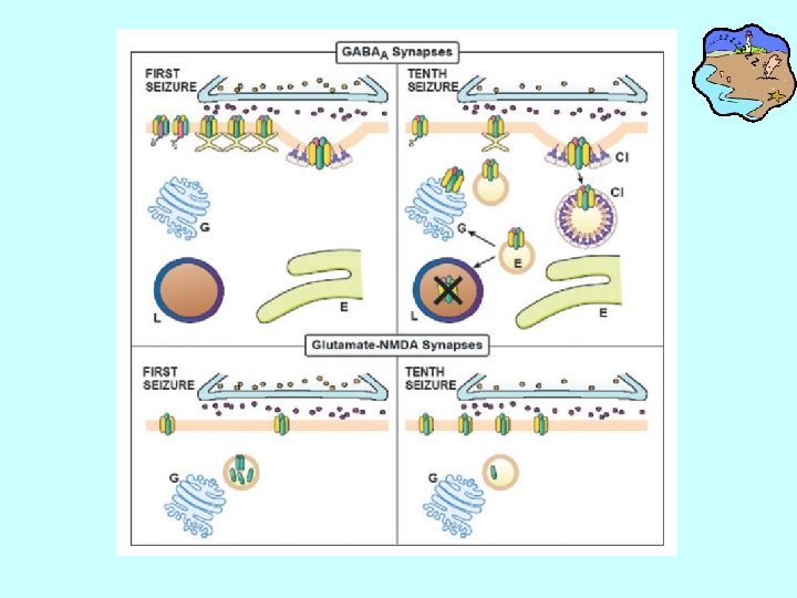 Pathophysiology of SE • 1. Excessive activation of excitatory amino acid receptors: – NMDA and AMPA glutamate receptors • 2. Reduction of GABA-mediated inhibition in the hippocampus – Prolonged seizures alter the GABAA receptor function( reduced potency and efficacy of GABA in activating chloride channels) • 3. Decrease in neuropeptides: – Neuropeptide Y – Gelanin