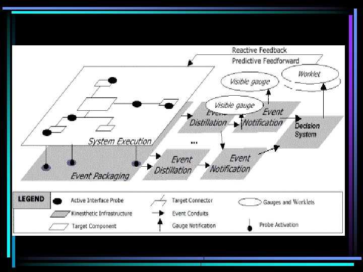 Prerequisite infrastructure • DA process must feed upon reports of occurrence of certain conditions at and among components and connectors of the target system – A minimally intrusive monitoring meta-architecture on top of the target system is needed – In this respect, process component is completely reactive • DA introduces an automatic closed control loop onto the target system – Detect-and-respond (feedback) – Detect-and-anticipate (feed forward) • Aims to handle situations spanning throughout the target architecture – involving heterogeneous components from multiple sources (COTS, open source, proprietary)