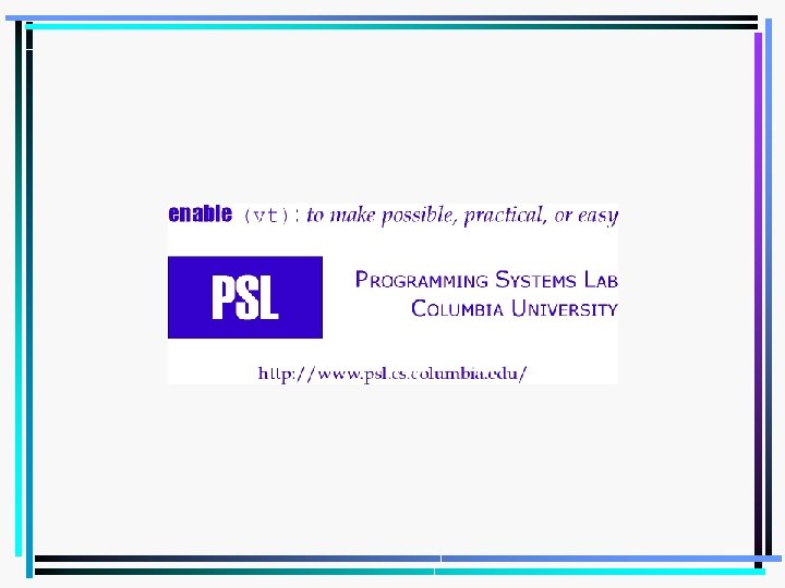 Latest directions: • Survivor NG (Next Generation): survivability for multilevel secure enterprise application systems – Worklets will be aware of multiple levels of security into the target system – Workflakes will implement the mechanics of multi-level security to be incorporated into applications with MLS requirements – Workflakes will recruit replacement task processors, install previously-in-progress state, upgrade security clearance, etc. to ensure survivability • AI 2 TV (Adaptive Interactive Internet Team Video) • synchronized multimedia for varying-bandwidth group viewing • Download Worklets – http: //www. psl. cs. columbia. edu/software/download/