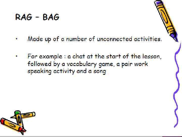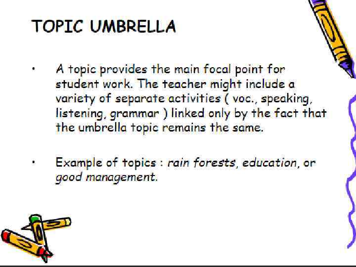 Logical line Topic umbrella Jungle path Rag-bag (J. Scrivener Learning teaching 2005)