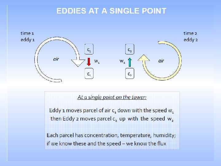WIND AIR FLOW IN ECOSYSTEM • Air flow can be imagined as a horizontal flow of numerous rotating eddies • Each eddy has 3 -D components, including a vertical wind component • The diagram looks chaotic but components can be measured from tower