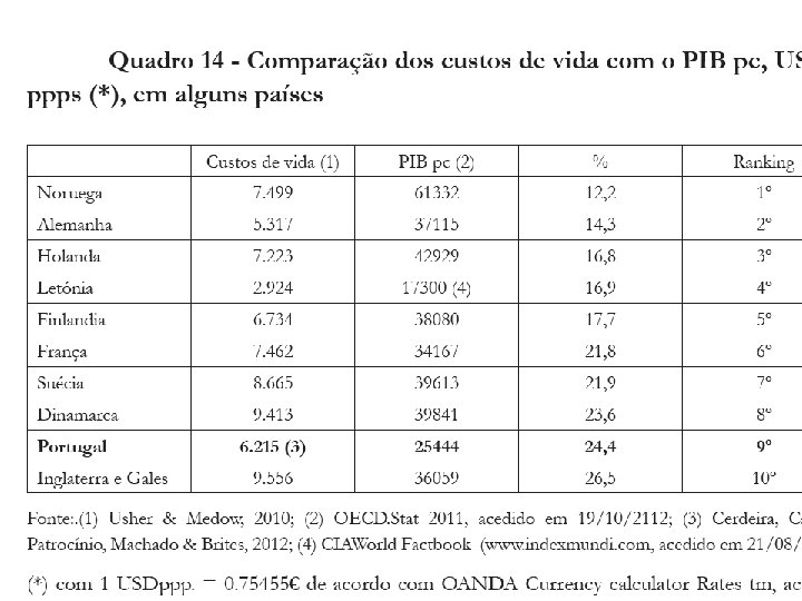 Após 2007 • Os rácios foram substituídos por factores de custo. • Mas estes factores são muito diferentes dos de outros países